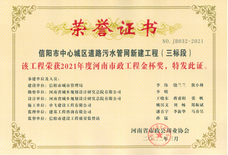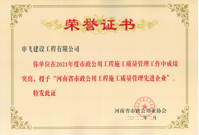 - [04-12]申飛建工再獲“省先進施工企業(yè)”、 “市政金杯獎”等多項榮譽